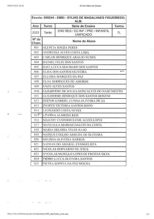 Prezadas famílias, sejam bem vindas ao ano letivo de 2022. Segue a lista das crianças matriculadas até a presente data.
